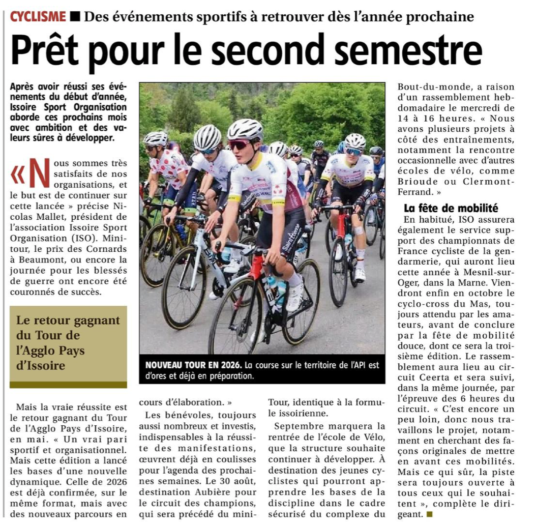 Issoire Sport Organisation était présent ce week-end au forum des associations à Issoire, avec Isabelle, Guy et Pascal afin de présenter ses activités et notamment son école de cyclisme et la nouvelle section féminine compétition 2026.