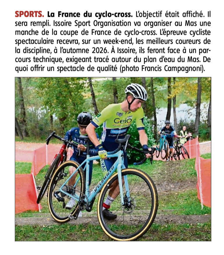 • Organisation des championnats Auvergne Rhône Alpes de cyclo-cross durant 2 jours,