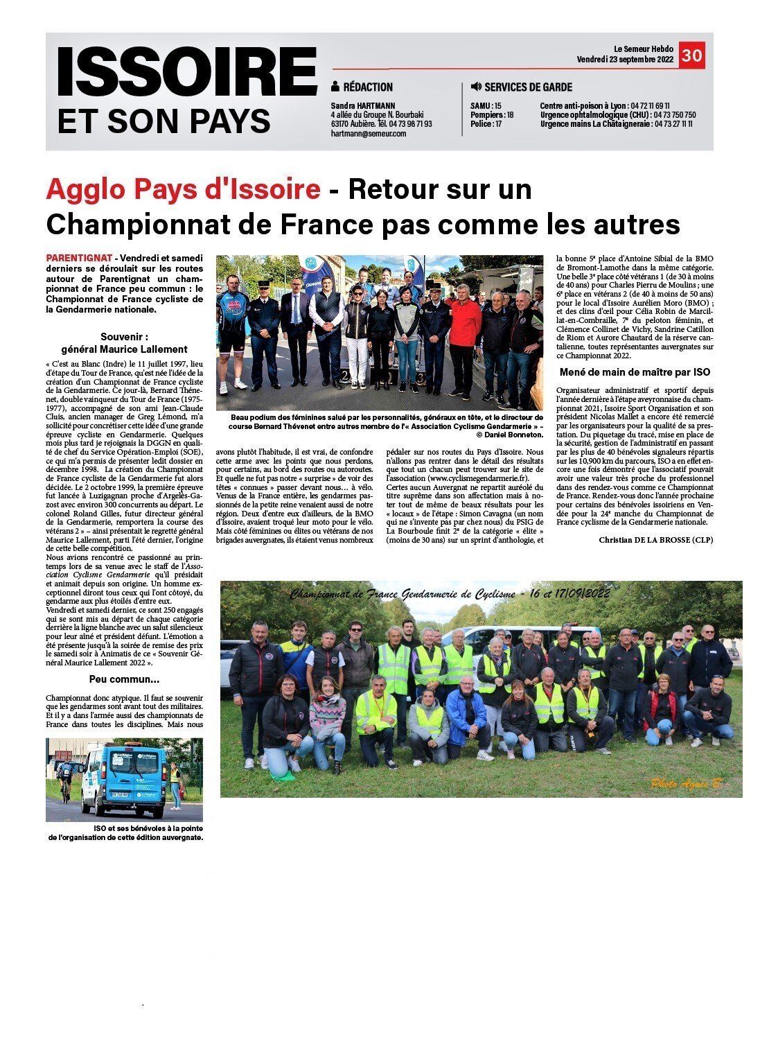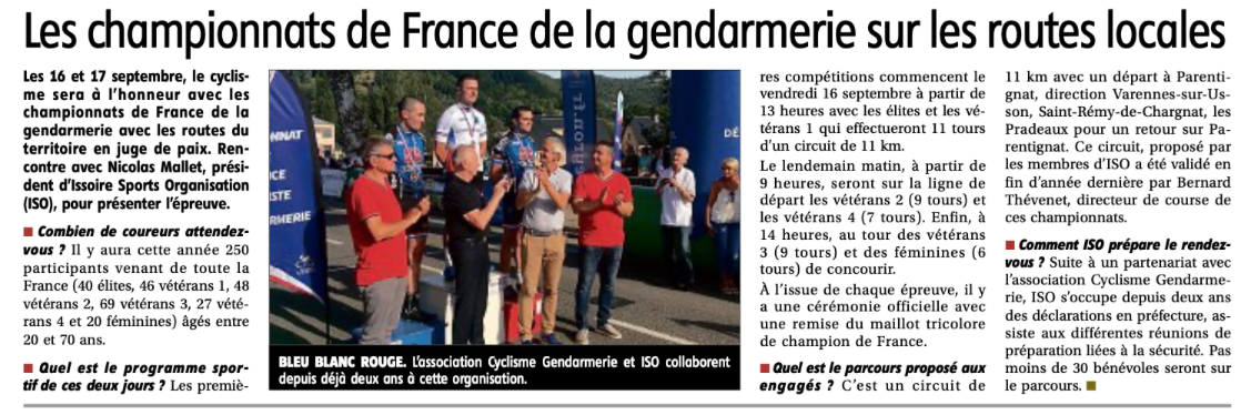 Vendredi, Bernard Thévenet, double vainqueur du Tour de France, était à Issoire en qualité de directeur de course. Accompagné de Jean Claude Cluis et du Général Maurice Lallement, la délégation est venue en repérage du 23ème championnat de France cycliste de la Gendarmerie Nationale, qui se tiendra sur le territoire les 16 & 17 septembre.